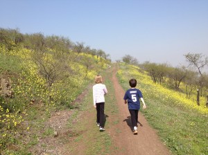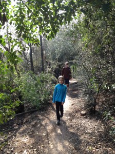 Next, we saw a tree swaying back and forth. We quickly realized that it had a monkey on top of it. Dad joked that there were probably five or six coming up behind us because you can’t really find monkeys alone. Sure enough, we continued walking down the path and we came upon five or six monkeys. One of which had a baby on his back.