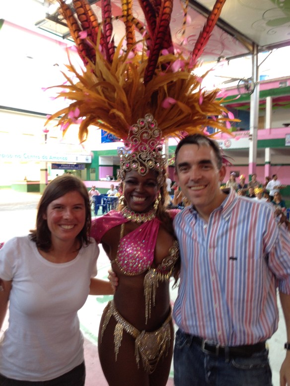While in Rio we got the chance to go to a samba school where they work all year in anticipation of Carnival. We visited the famous Mangueira Samba School. Two of the dancers gave us lessons in the dance and then we got to decorate a headdress and watch a performance. I can honestly say I’ve never seen anything quite like it.